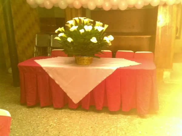 Vasos, copas para cóctel, platos arrocero y trinche, tazones, cafeteras, termos, cubiertos de primera calidad, chafers, así como bambalinas con cubremantel.